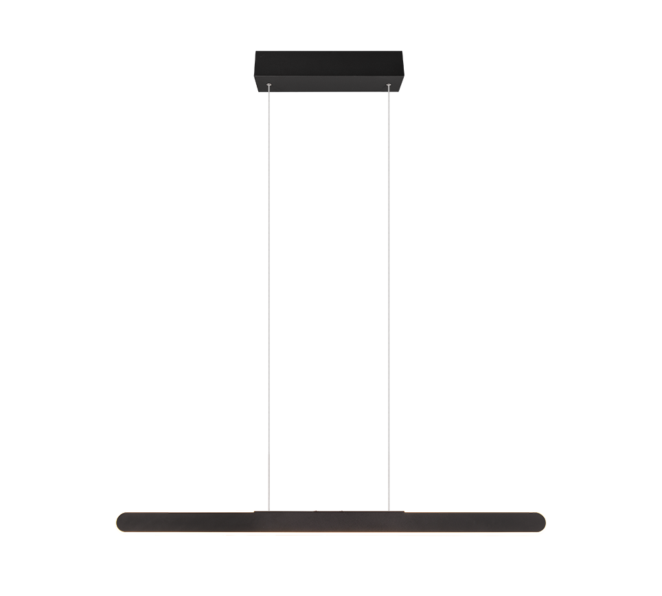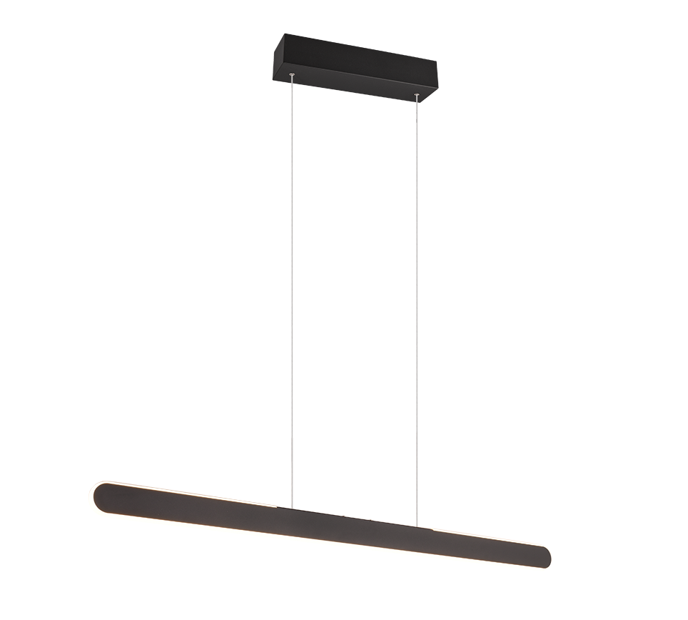 De TRIO Helios LED hanglamp is een moderne, slanke balklamp in mat zwart die jouw eettafel of kookeiland direct tot het middelpunt van de ruimte maakt. Dankzij de geïntegreerde LED-strip geeft de Helios zowel licht naar beneden als indirect licht naar boven voor een strak, zwevend effect.