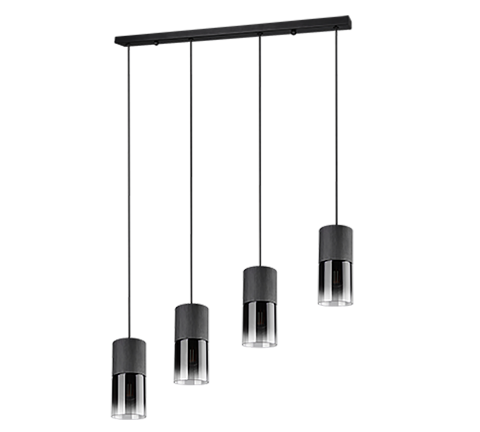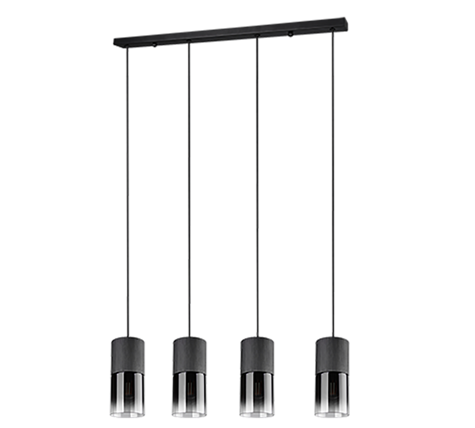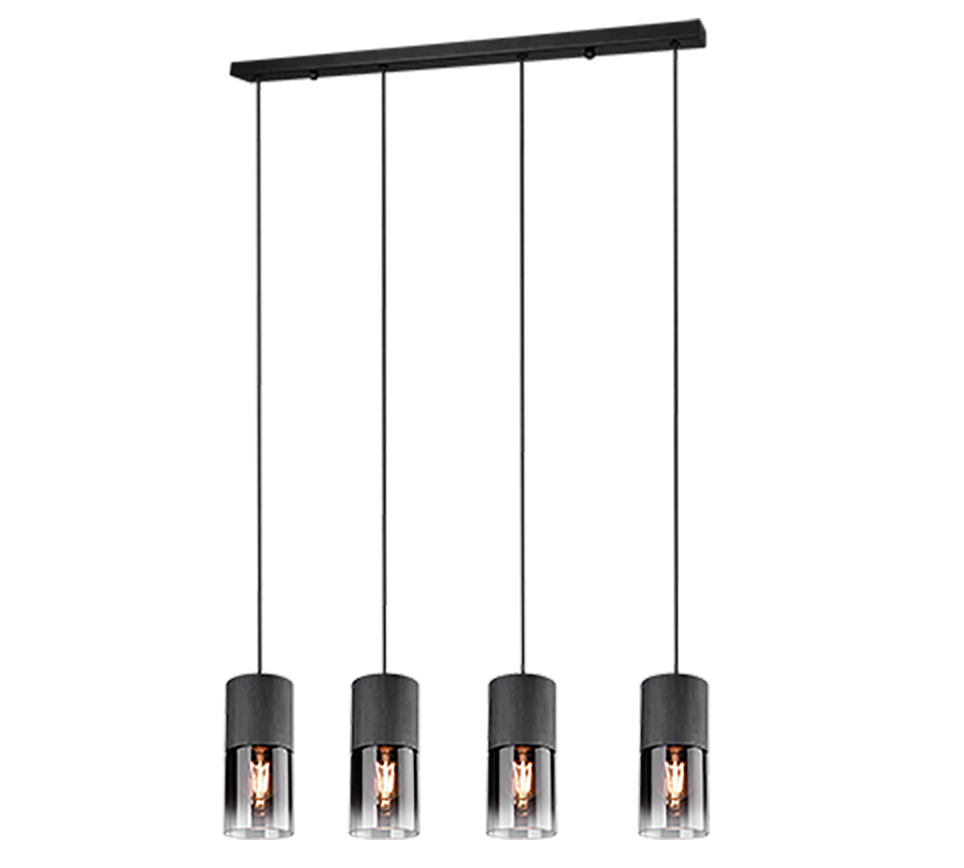 - Moderne 4-lichts hanglamp met cilindervormige smoked glass kappen