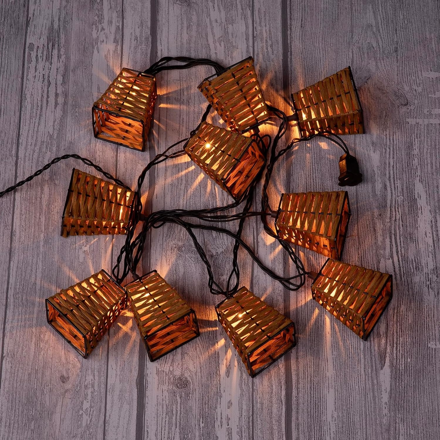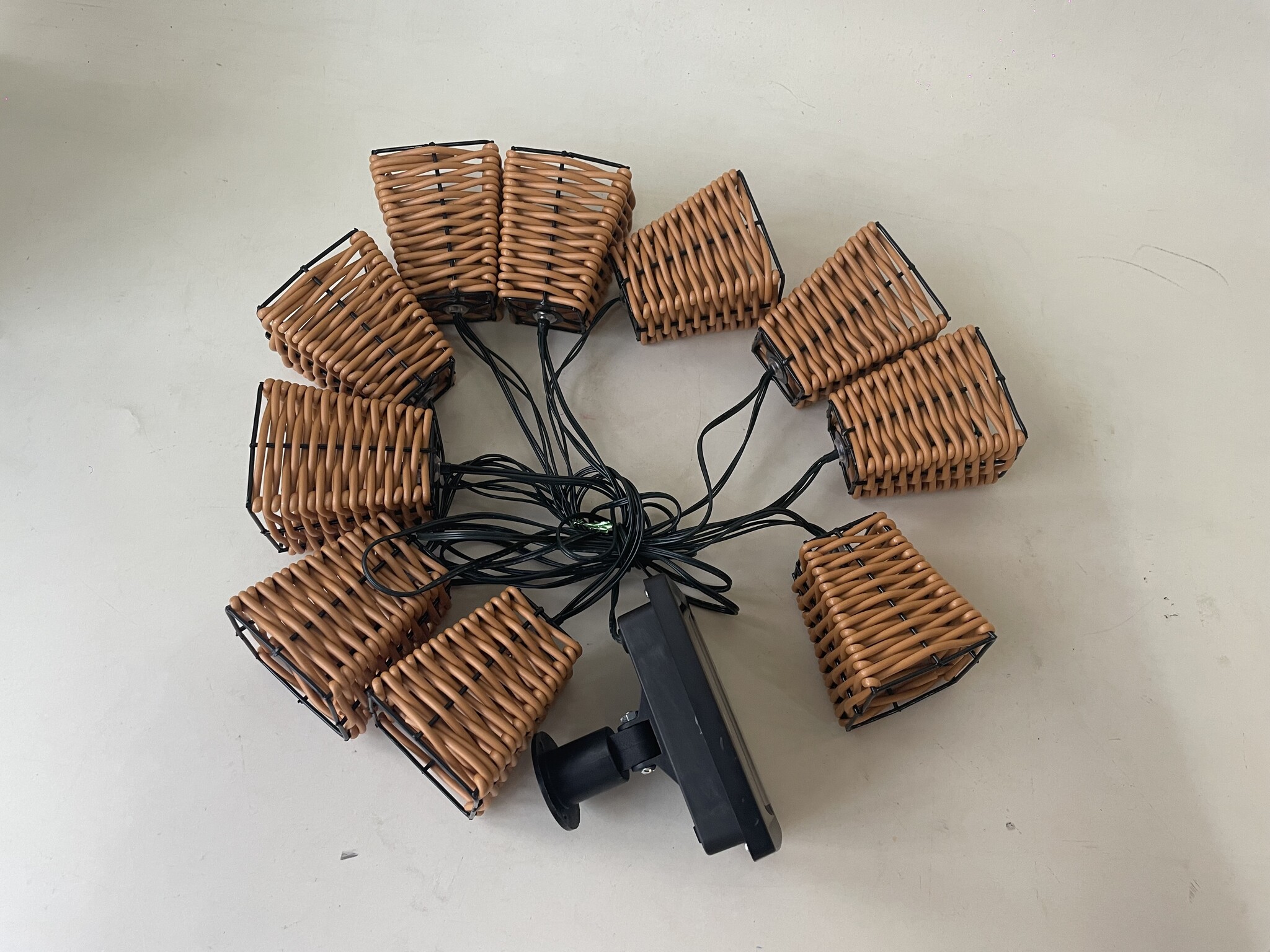 Solar Lichtsnoer met Rieten Mandjes – 10 Lampen | 3,8 Meter