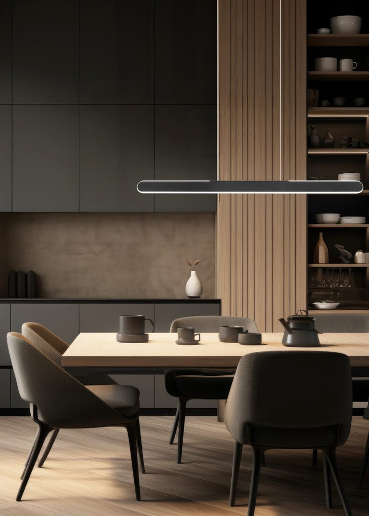 De Trio Helios hanglamp is een moderne en stijlvolle verlichtingsoplossing die perfect past boven de eettafel, in de woonkamer of op kantoor. Met zijn strakke lijnen en matzwarte afwerking voegt deze lamp een eigentijdse flair toe aan elk interieur.